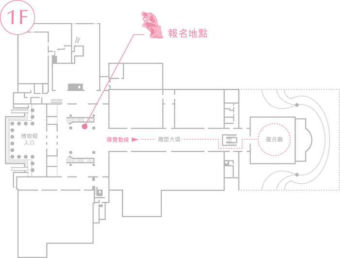 地 點:常設展廳(導覽路線:1F雕塑大道、羅丹廳)