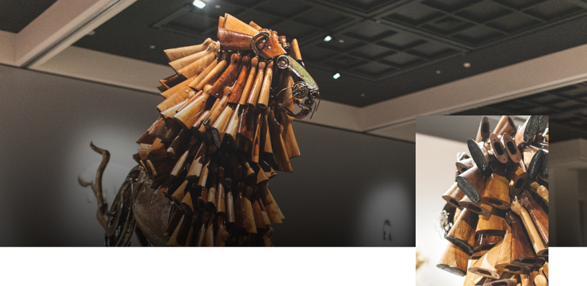 本次參展作品「塞西爾CECIL」,源自2015年7月一位美國牙醫為了滿足個人樂趣,以金錢交易換取獵殺辛巴威獅子塞西爾CECIL事件,吉爾對此感到憤慨,決定以雕塑方式紀念塞西爾並討論這個議題。他用純回收物品進行創作,以表達那些自認為有錢就可以主宰世界、擁有一切權利的人的不認同。其中,特意使用槍托呈現塞西爾的鬃毛,想訴求武器也有其它用途,並非只能用來滿足野蠻人的獵殺需求。所有東西都是一體兩面,所有觀念都可及時改變,拯救地球與自然的使命,是當今人類應該共同攜手面對的迫切課題。