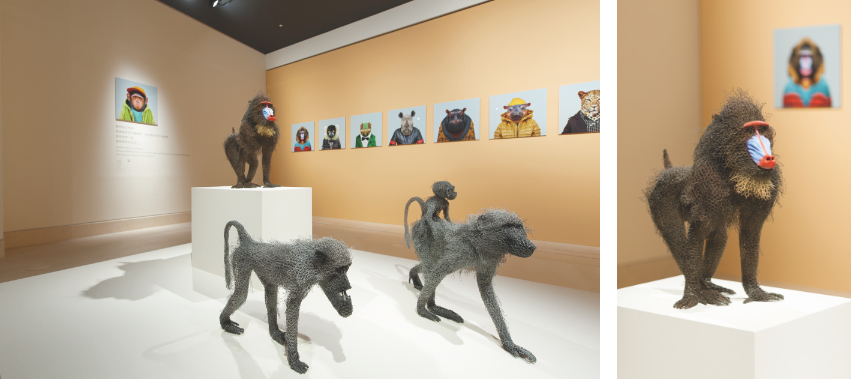 鐵絲網是用來製作圍籬,以防止動物逃脫或進入。英國藝術家肯德菈.海斯特(Kendra HASTE),卻利用鐵絲網做出各種唯妙唯肖的動物,此次參展的5件作品,不論是狒狒靈巧的姿態,疣豬粗糙的皮膚、雜亂蓬鬆的鬃毛…,都是利用鐵絲網製作出來的。