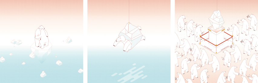 臺灣插畫家廖國成以他最愛的北極熊為題,運用簡單的筆觸,輕柔的顏色,描繪北極熊因人類介入,逐漸消失的過程,白皚皚的雪地甚麼都沒有,最後所有北極熊都住進博物館,成為標本。用來提醒北極熊迫切需被重視的生存議題。