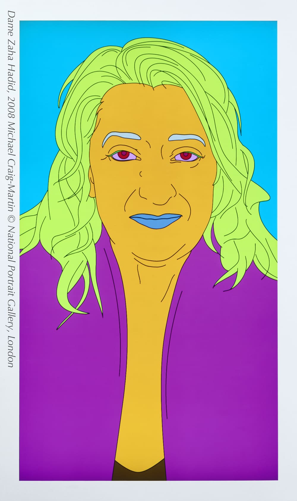 伊拉克裔英國建築師札哈.哈蒂有「曲線女王」的稱號,作品形式大膽前衛,世界各地都可以欣賞到她的建築設計。2004 年,她成為聲望最高的普立茲克建築獎首位女性得主,2010 年與 2011 年獲得史特靈獎。哈蒂更於2016年成為英國皇家建築師協會自1848年以來首位個人獲頒皇家金獎的女性得主。 英國觀念藝術家麥可.克雷格-馬丁創作的肖像由一個 LCD 液晶螢幕呈現,像畫作一樣掛在牆上,畫面是哈蒂穿著三宅一生外套的線稿圖。線性輪廓不變,透過電腦軟體,人像與背景色彩緩慢持續地產生隨機變化。